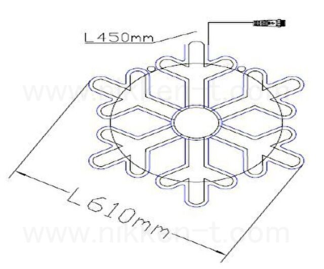 ◆SMALL ネオンスノーフレーク1 RY2 ブルー 61×61cm ◆LED540球仕様 連続した光が美しいネオン平面モチーフライト 常時点灯 ◆点滅無しの落ち着いたスノーフレーク ◆軽量・サビに強いアルミフレーム ◆2芯 Ver2コネクタ仕様