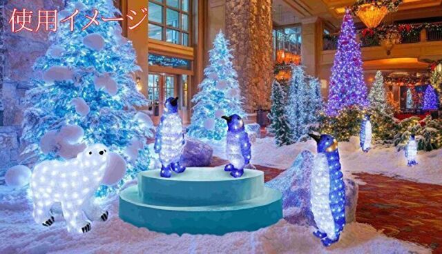 ◆ブルーペンギンL W28cm×D23cm×H63cm ◆クリスマス&サマーイルミネーション装飾に ●防水規格:IPX4 ●24Vアダプタ付 消費電力:4W ●常点灯 ●白色LED160球 ●材質:銅線、PS ●重量:1.6kg