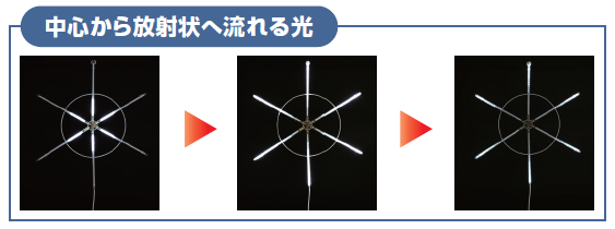 中心から放射状へ流れる白い光が 空間に動きを生み出します