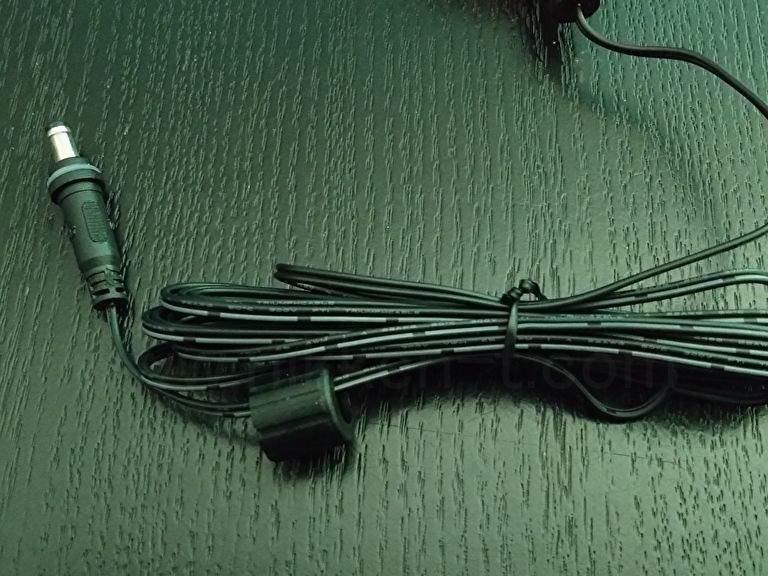 出力側は樹脂製のネジ式コネクタ付のDCプラグ(外径5.5Φ、内径2.1Φ)になっており、ミニオーバル型スノーフォール・DC12Vフェードストリング DCジャックに接続できます。