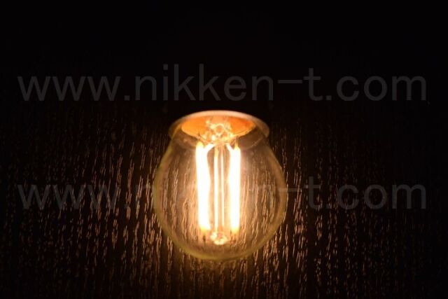 | 製品名: | フィラメント型LEDクリア電球、E26、G45型、調光可能、2W、電球色(約3000K) |