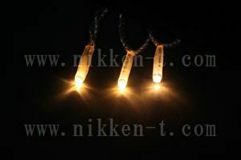 プロ仕様V4 LEDストリングライト(ストレート)10m100球 電球色(オレンジゴールド) シルバー(クリア)コードモデル 従来の電球の色に少しオレンジ色の入ったキャンドルカラーです。 暖かみのある色合いが人気です。 気候条件の厳しいサマーイルミネーションスポットでも多数ご採用モデル。 2重EVAチューブ採用で耐久性がさらに向上! 保護等級IP67を取得済(灯体部分) 「プロフェッショナルV4」(特許第5356861号) 電線とLEDの結合部分(LEDヘッド)を劣化に強いEVAのチューブで2重に覆い、従来製品よりさらに耐久性・耐候性が向上した「プロフェッショナルV4」シリーズのイルミネーションです。 灯体部分の保護等級はIP67を取得しています。 LEDまわりのチューブが透明になったため、従来品より見た目の明るさが増しました。 扱いやすく変形の少ない金属製のコネクタを採用しているので、連結や電源コードの取り外しが簡単です。 コネクタ部分も灯体と同等の防塵・防水性があります。 15本1,500球まで連結可能。 ※防雨型常点パワーコード(点滅無し)、エンドキャップ 付き/無し 選択可能です。