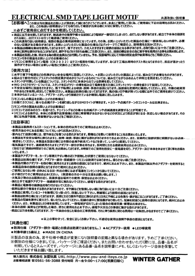 | 製品名: | LEDエレクトリカルアイスモチーフ スノーフレークDX リモコン付 75×75cm |