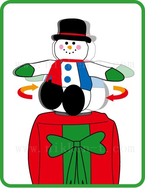 プレゼントボックスの上でスノーマンが左右に回ります
